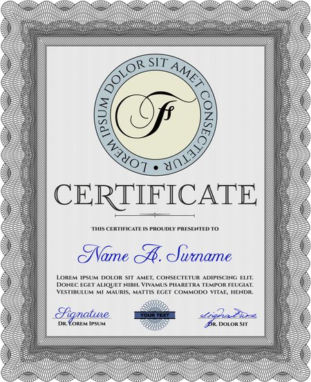 Certificate template. Printer friendly. Detailed. Nice design. Grey color.