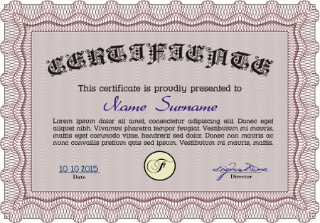 Certificate template. Printer friendly. Nice design. Detailed. Red color.