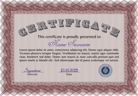 Certificate template. Retro design. With guilloche pattern. Border, frame.