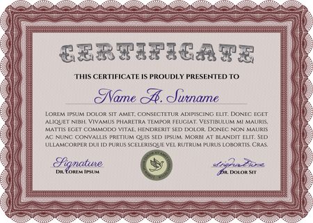 Certificate template. Vector certificate template.Artistry design. With guilloche pattern.