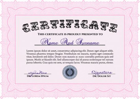 Certificate template. Vector pattern that is used in money and certificate.Retro design. With guilloche pattern and background.