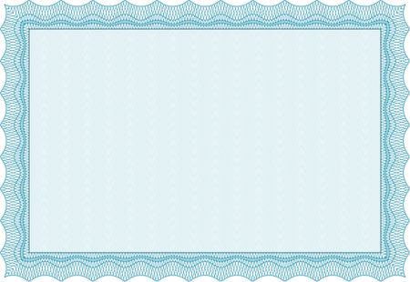 Certificatem diplmoa or award template. Design template. Money style design. With guilloche pattern. Light blue color.