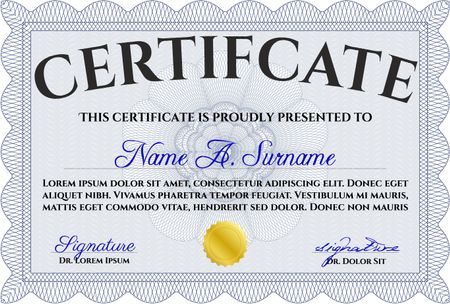 Classic Certificate or Diploma template. Money Pattern design. Blue color.
