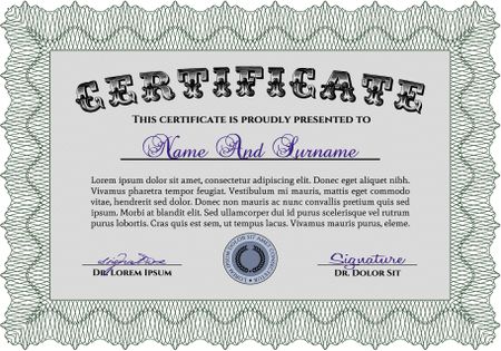 Classic Certificate or Diploma template. Money Pattern design. Green color.