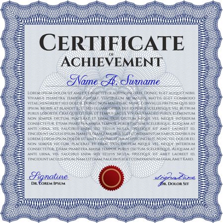 Classic Certificate or Diploma template. Money Pattern design. Blue color.