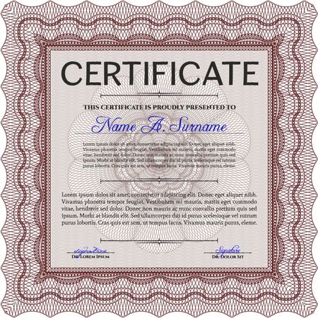 Classic Certificate or Diploma template. Money Pattern design. Red color.