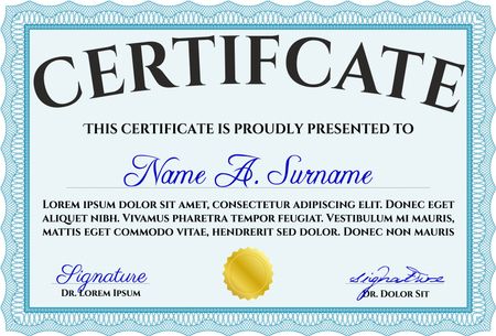 Classic Certificate template. Money Pattern design. Light blue color.