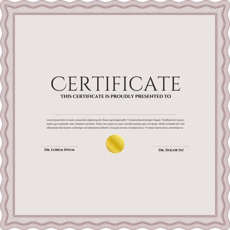 Classic Certificate template. Money Pattern design. Red color.