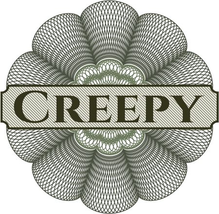 Creepy written inside a money style rosette