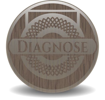 Diagnose badge with wooden background