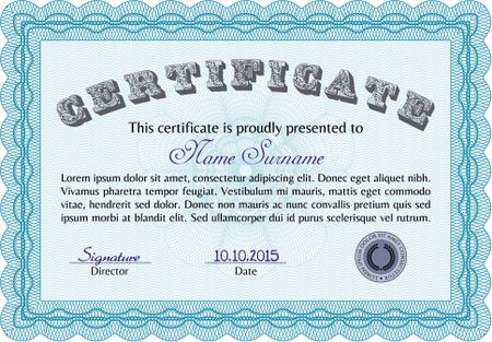 Diploma or certificate template. Beauty design. With background. Diploma of completion.