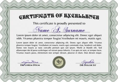 Diploma or certificate template. Border, frame.Good design. With guilloche pattern and background.