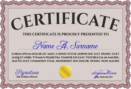 Diploma or certificate template. With complex background. Lovely design. Vector illustration. Red color.
