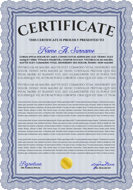 Diploma or certificate template. Complex background. Vector pattern that is used in currency and diplomas.Superior design. Blue color.