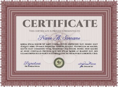 Diploma or certificate template. Complex design. With complex linear background. Money style.