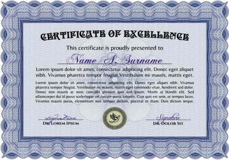 Diploma or certificate template. Cordial design. Printer friendly. Vector illustration.