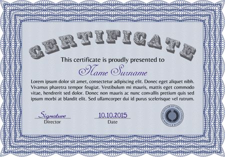 Diploma or certificate template. With guilloche pattern and background. Beauty design. Vector pattern that is used in money and certificate.