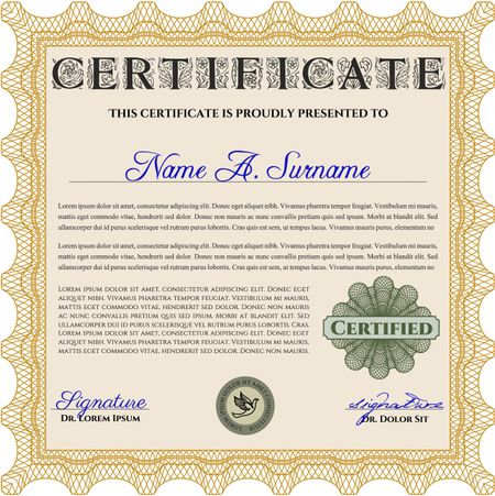 Diploma or certificate template. Lovely design. Vector illustration. With complex background. Orange color.