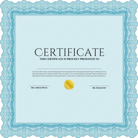Diploma or certificate template. Vector illustration. With complex background. Lovely design. Light blue color.