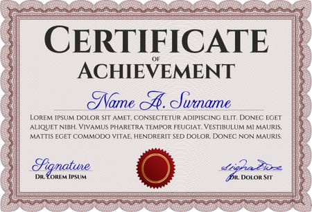 Diploma or certificate template. Vector illustration. With complex background. Lovely design. Red color.