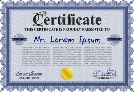 Diploma or certificate template. Vector illustration. With complex background. Lovely design. Blue color.