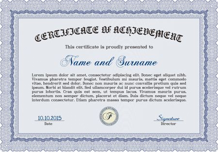 Diploma or certificate template. Vector pattern that is used in currency and diplomas.Superior design. Complex background. Blue color.