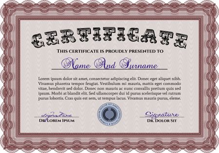 Diploma. Complex design. Easy to print. Vector certificate template.