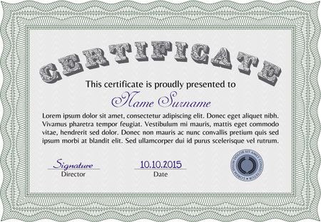 Diploma. Complex design. Frame certificate template Vector.With guilloche pattern and background.