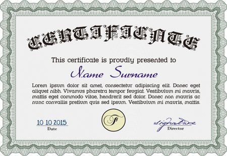 Diploma. Frame certificate template Vector.Cordial design. Printer friendly.