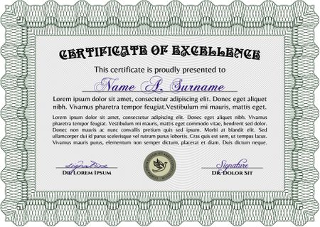 Diploma. Frame certificate template Vector.Cordial design. Printer friendly.