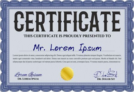 Diploma. Good design. With background. Border, frame. Blue color.