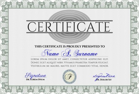 Diploma. Good design. With background. Border, frame. Green color.