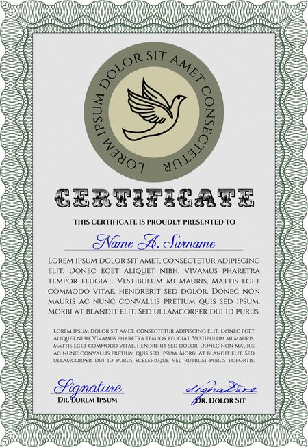 Diploma template or certificate template. Artistry design. With quality background. Vector pattern that is used in money and certificate. Green color.