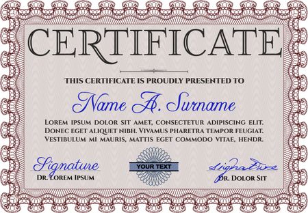Diploma template or certificate template. Artistry design. With quality background. Vector pattern that is used in money and certificate. Red color.