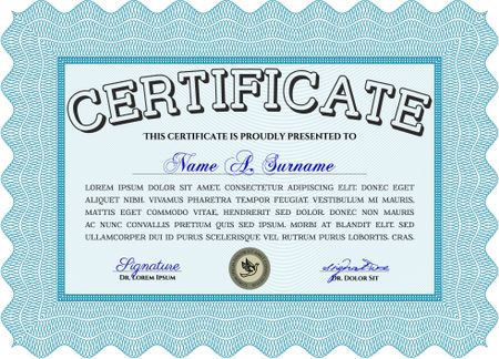 Diploma template or certificate template. Beauty design. Vector pattern that is used in money and certificate. With quality background. Light blue color.