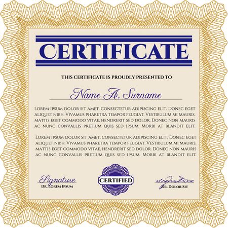 Diploma template or certificate template. Beauty design. Complex background. Vector pattern that is used in currency and diplomas.Orange color.