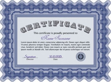 Diploma template or certificate template. Border, frame.Sophisticated design. With complex linear background.