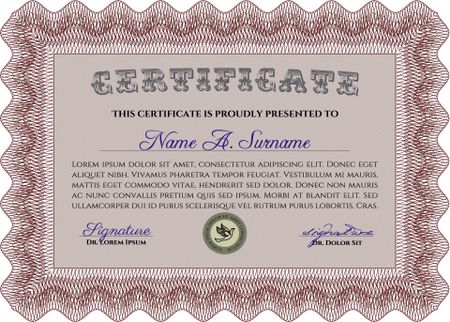 Diploma template or certificate template. Complex background. Retro design. Money style.