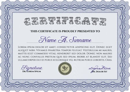 Diploma template or certificate template. With complex linear background. Artistry design. Frame certificate template Vector.