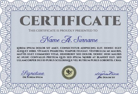Diploma template or certificate template. Excellent design. With guilloche pattern. Border, frame.