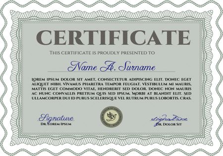 Diploma template or certificate template. Excellent design. With guilloche pattern. Border, frame.