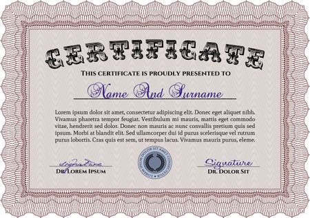 Diploma template or certificate template. Money style.Beauty design. With linear background.