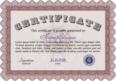Diploma template or certificate template. Money style.With complex background. Beauty design.