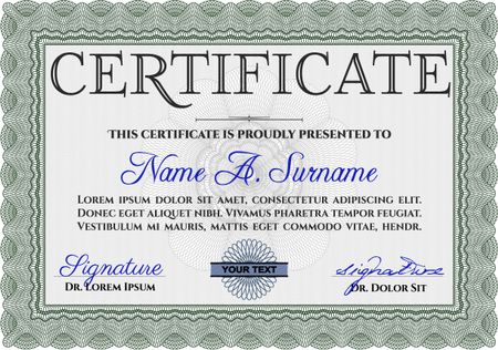 Diploma template or certificate template. With quality background. Vector pattern that is used in money and certificate. Beauty design. Green color.
