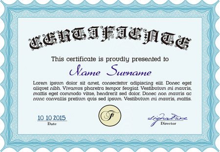 Diploma template or certificate template. With quality background. Vector pattern that is used in money and certificate. Artistry design. Light blue color.