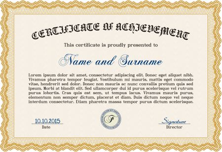 Diploma template or certificate template. With quality background. Vector pattern that is used in money and certificate. Beauty design. Orange color.