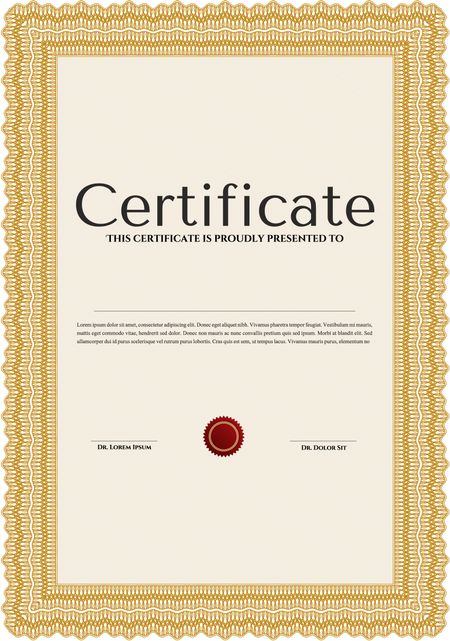 Diploma template or certificate template. With quality background. Beauty design. Vector pattern that is used in money and certificate. Orange color.