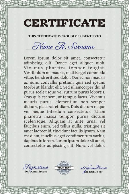 Diploma template or certificate template. Vector certificate template.Complex background. Excellent design.
