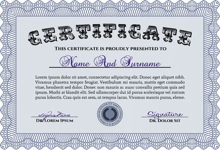 Diploma template or certificate template. Vector certificate template.With guilloche pattern. Beauty design.