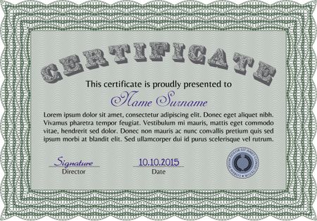 Diploma template or certificate template. Vector pattern that is used in currency and diplomas.With linear background. Cordial design.